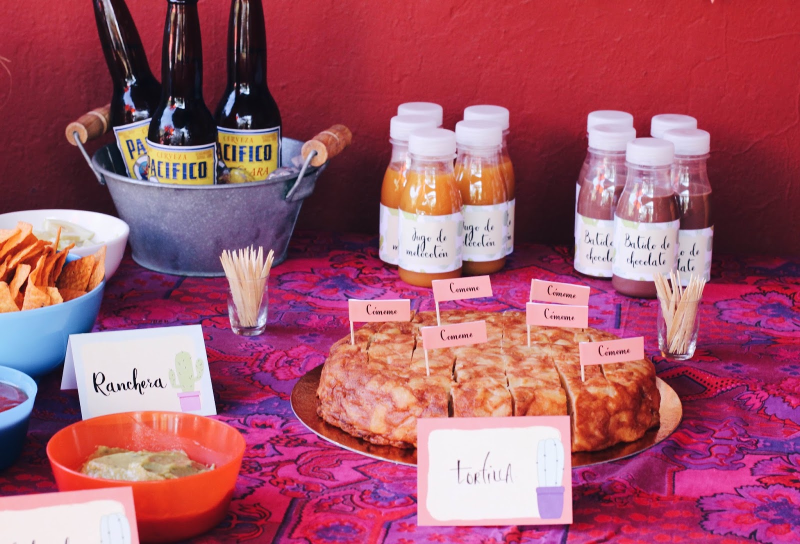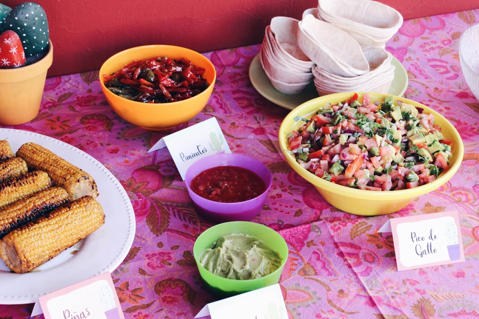 La segunda era una barra libre de tacos y fue el éxitaso: pusimos los tacos con distintos rellenos y salsas ( salteado de pollo, pimientos, pico de gallo, piñas asadas, guacamole…) Se me hace la boca agua solo de recordarlo.